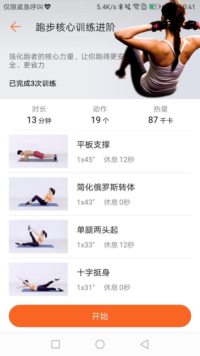 为了弥补手表屏幕过小的遗憾,在华为运动健康的App上还增加了两项重要功能——按照“训练课程”健身和制定“训练计划“。在官方设定好的”训练课程“中,用户根据自身的需求进行下载,并按照视频课程指导完成一系列动作。
