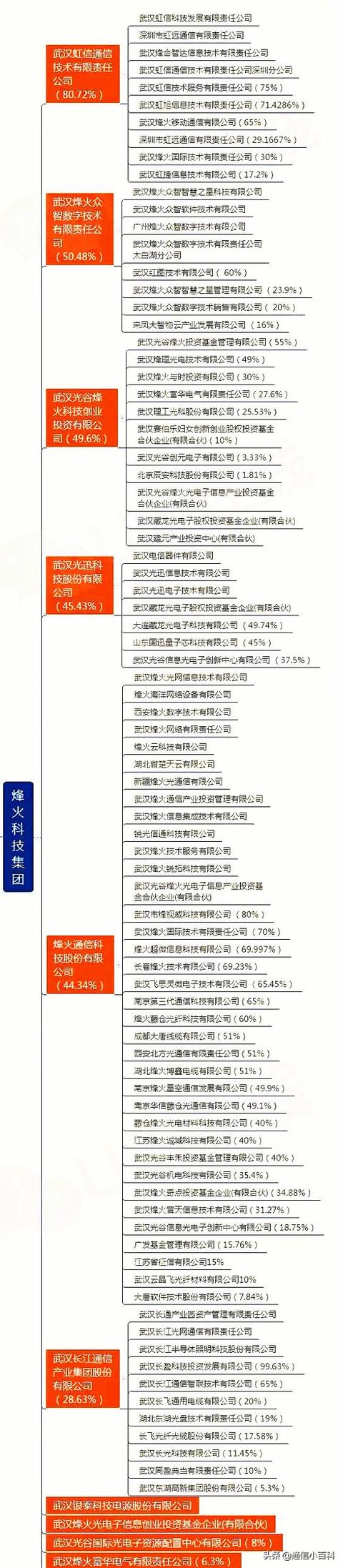 同大唐系一样,烽火科技旗下拥有众多分子公司和控股公司: