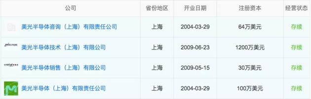 每日经济新闻(微信号:nbdnews)记者查询天眼查发现,目前,美光科技在上海有4家公司,在西安有一家公司。