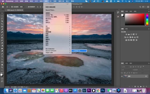但是Luminar独立的修图功能并没有Photoshop强大,也与其他的辅助工具不兼容,所以最好的使用方式还在Photoshop中作为一个插件来打开。打开“滤镜”菜单找到其程序,就能加载到他的修图窗口。