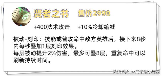 新版贤者之书是杨玉环的核心装备,400点法强提高回血量和伤害,技能CD短可以持续消耗一直保持贤者之书的8层被动。
