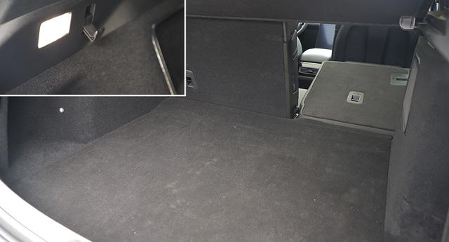 同时,后备厢空间表现出色,且后排座椅支持比例放倒,加之整个后备厢均有绒布进行包覆,以及两侧的照明,日常使用和装载物品,还是相对方便的。