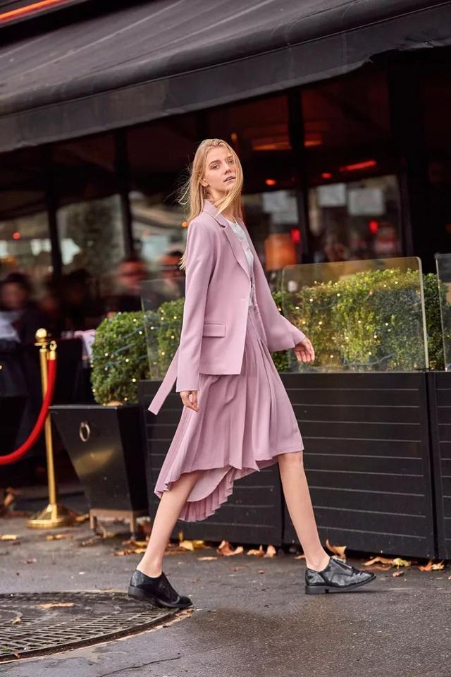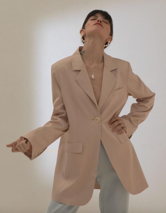 STUDIO TOMBOY西装的颜色是那种柔柔的蜡笔色,黄皮肤的亚洲女孩好驾驭无压力。