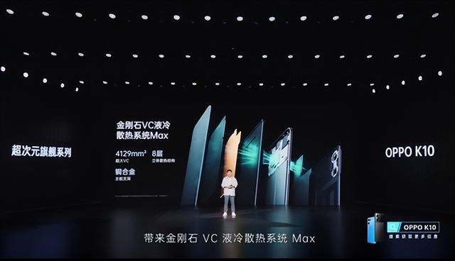 OPPO K10首发OPPO 67W闪充,29分钟充至80%电量。该机的散热模组采用了金刚石VC液冷散热系统,搭配OPPO首款自研18W冰点散热背夹可以“将温暖送给别人,将清凉留给自己”,噪声仅有24分贝,背夹售价199元。
