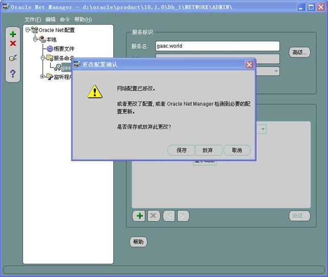 1、配置服务器连接。运行ORACLE NET MANAGER,如下表: