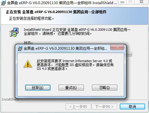 计算机内如果没有配置.NET Framework 4.0,或者版本过低,安装过程中可能会出现以下错误信息,所以建议提前配置。