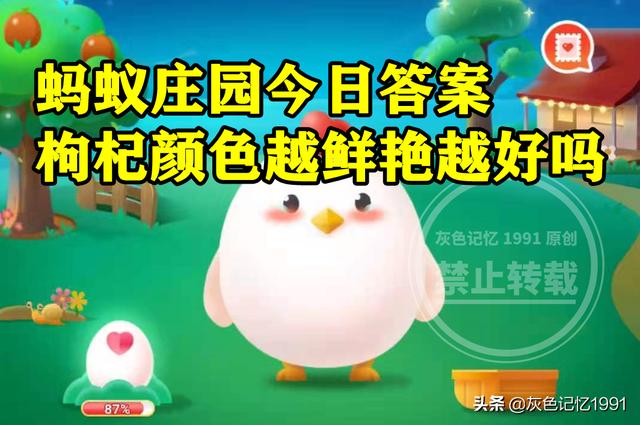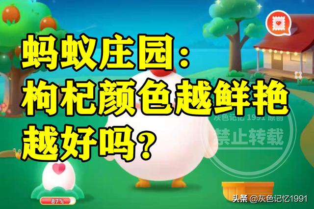 蚂蚁庄园:枸杞颜色越鲜艳越好吗?A、不一定哦 B、越鲜艳越新鲜。