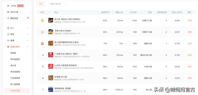 一时间,各种达人探店视频、探店美食测评视频在抖音变得火热,蝉妈妈显示,越来越多的本地商家入驻抖音平台,并且开始直播带货,销售线上虚拟产品,在线下实现交付,为线下门店引流,本地生活的商家一定要及时把握机会。