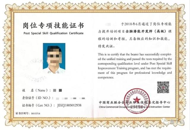 另外,还有数十名“全脑潜能开发师”、“全脑速读训练师”,都附上了岗位专项技能证书。
