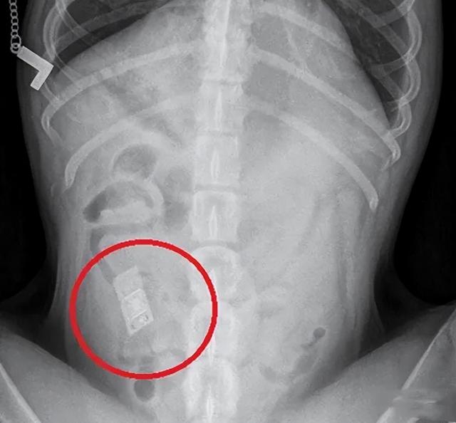 经过X光透视,医生发现了问题:Rocco吞食了一张Switch卡带。
