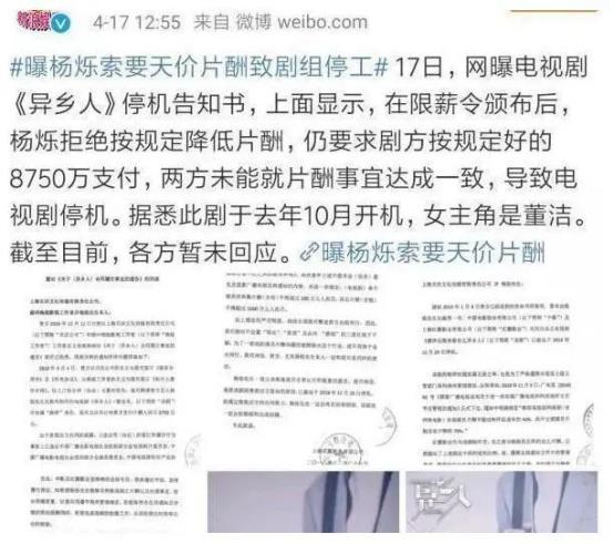 2017年下半年,杨烁接下电视剧《异乡人》,因为高达8750万的片酬,小小的上了一把热搜。
