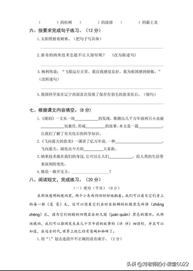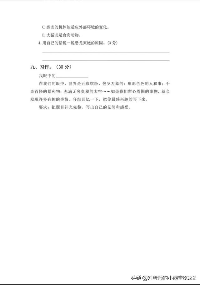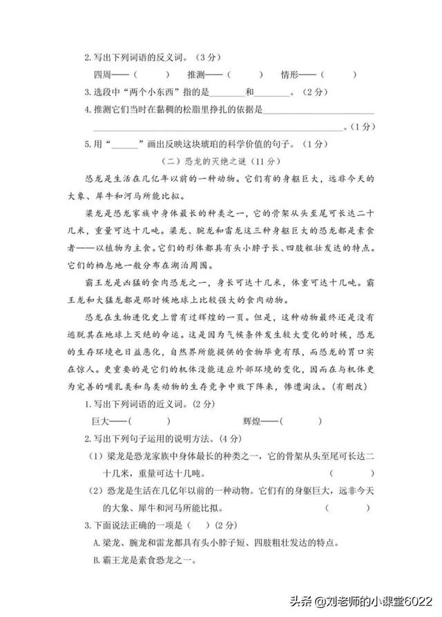 试卷(附答案),需要的朋友可以关注收藏,以便于辅导孩子学习。