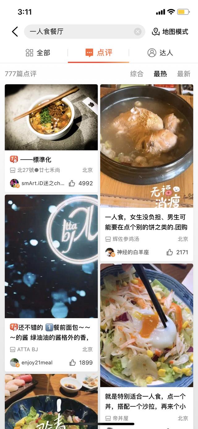 与日本相比,国内近几年也开始有主打“一人食”的餐厅,例如呷浦呷浦、争鲜、禾绿回转寿司、六丁一人食烧锅等,各大平台上,相关的榜单和点评也不少。