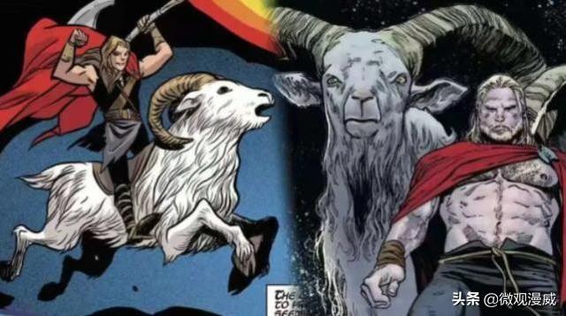 在漫画中,两只山羊的名字分别是咬牙者和磨牙者,这两只山羊可并非凡间之物,平时可以供雷神索尔飞行驾驶,速度极快,可以快速飞过十个王国之远。