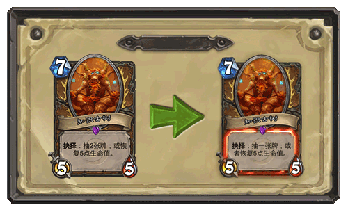 以前过于imba的知识古树是什么样子的?它的抉择是回5血或者摸2张牌。需要说明的是,这在当时的价值模型上是完全可以接受的,而且回5血是比摸2张牌亏一些的(1张职业卡+3费,对应治疗之触和奥术智慧)。