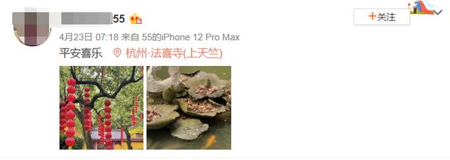不过最最最大的重点来了!还记得水子哥搜索栏里的法喜寺吗,55本人也发布了一张在法喜寺定位的照片。