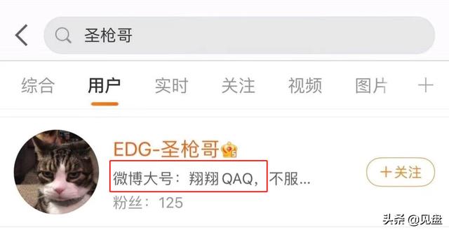 也有部分粉丝在找圣枪哥微博的时候,直接搜出来EDG-圣枪哥这样一个ID。