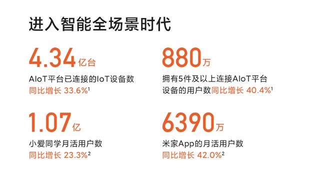 截至2021年12月31日,小米AIoT连接设备(不包括智能手机、平板及笔记本电脑)数达到4.34亿件,同比增长33.6%。