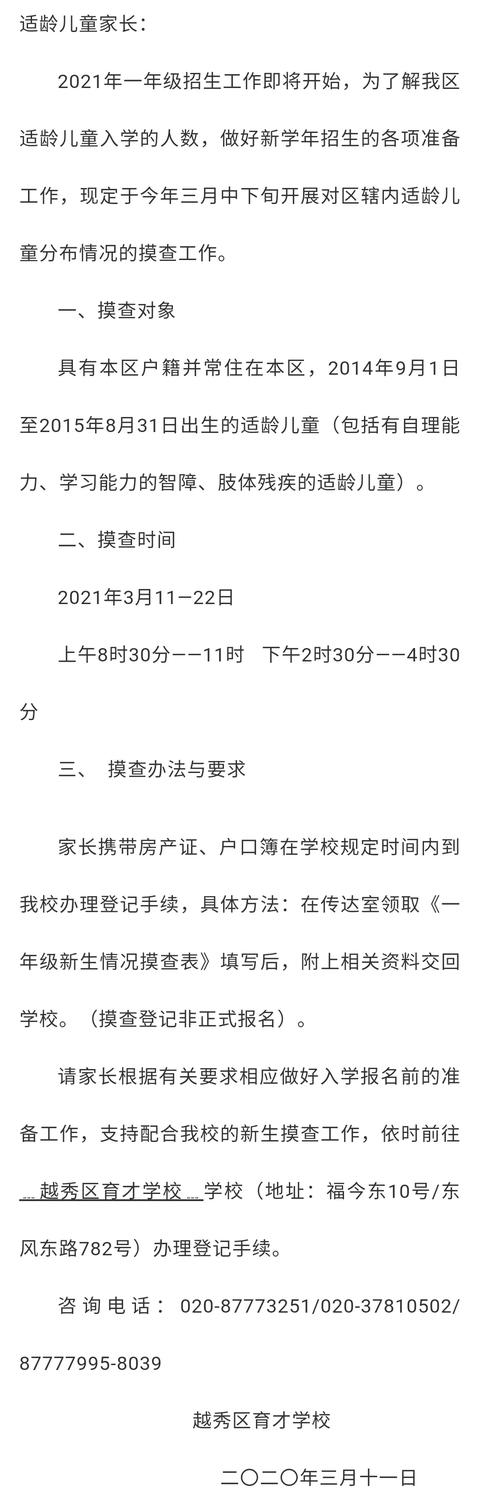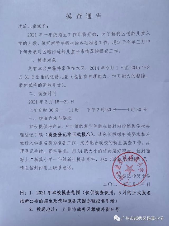 近日,越秀区这些学校陆续发布摸查通知,请广大家长注意,及时准备好相关材料。