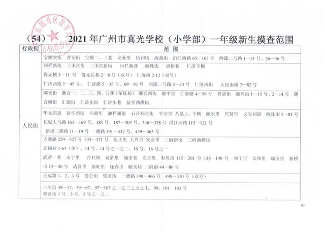 2021年越秀区珠光路小学适龄儿童摸查登记表