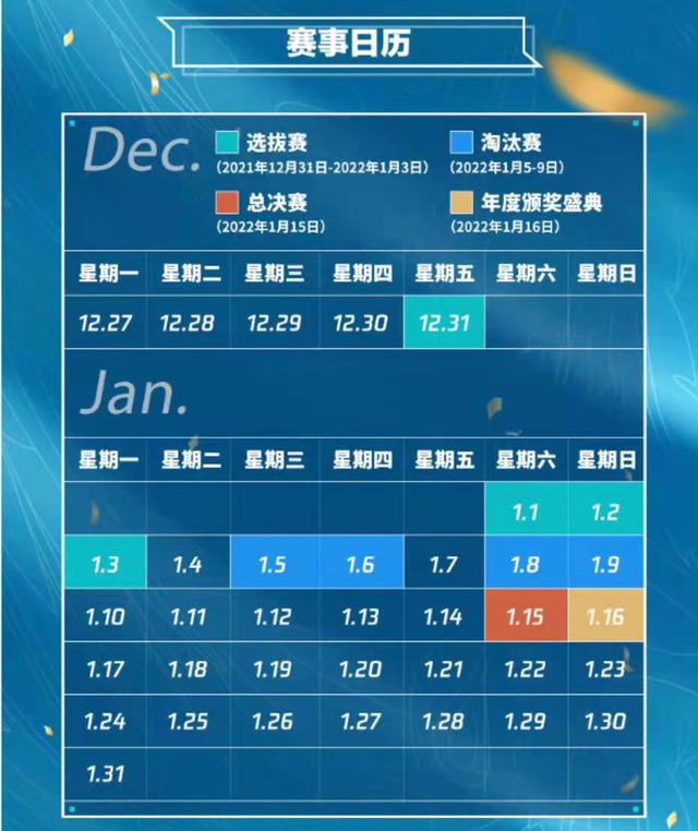 首先看下挑战者杯的赛程赛制,一共分为3个阶段,第一阶段是选拔赛,为期4天,12月31号开始。选拔赛采用BO1单循环赛制,9支队伍参与,积分前4名的队伍晋级正赛。9支选拔赛战队,分别是KPL秋季赛的第4-6名(XYG、TES.A以及GK战队),KGL秋季赛的第2-4名(Hi、火豹以及Wz战队)以及第四届全国大赛的前3名。