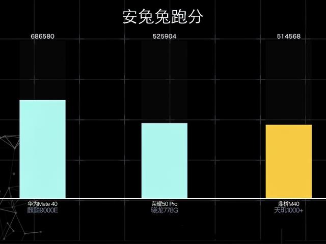 鼎桥M40搭载的处理器是天玑1000+,这款处理器并没有什么亮眼的表现,性能表现也不是多么的出色,不知道鼎桥哪里来的勇气,给这样一款手机订上3999元的起售价格。华为mate40搭载的处理器是麒麟9000E,这款处理器虽然不如麒麟9000那么出色,但是性能表现比较稳定,功耗控制的也不错。