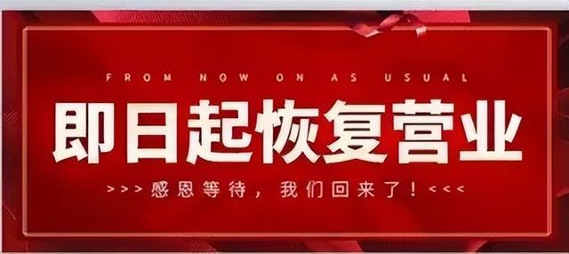 根据上级部门通知,****(企业名称)*月*日起全面复工,恢复营业。此前给您带来不便敬请谅解。