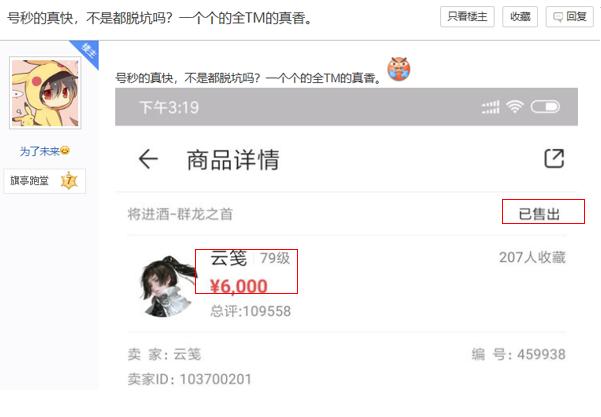 为什么会有团伙刻意的抹黑、做空《逆水寒》呢?在账号交易当日,这场酝酿了许久的"阴谋"才开始揭露。当账号交易系统上线后,就不断有人在贴吧汇报战果——很多玩家惊异的发现,以前宣传《逆水寒》要凉了的贴吧ID,是买号买的最频繁的,甚至直言自己连"F5"都按坏了……他们会刻意的挑选性价比极高的账号快速下手,一旦发现有误信谣言按照"贴吧估价"低价贩售自己游戏角色,还会被人翻出来嘲弄一番。