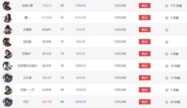 《逆水寒》中,玩家正常游戏,账号战力一般能到9-10万,这种账号在藏宝阁中能以3-5000的价格售出,追求过装备的小氪玩家战力评分一般在11-12万,根据账号内道具,可以卖出1万以上的价格。中高战力13-14万的甚至可以卖出接近10万的价格。至于像月皇、傲宇这样超过20万战力的……是没看见大佬有想脱手的。