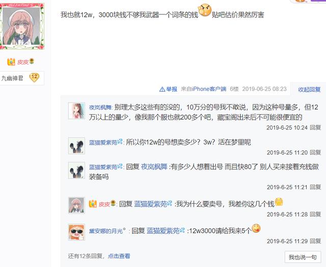 在"贴吧大佬"的嘴里,一个正常游戏,战力评分8至10万的普通平民账号,只能以一千甚至数百人民币的价格贱卖。许多玩家眼中至少能值上万元的账号也被他们一再贬低,恨不得让你只以心理预期的1/3甚至更低处理掉。