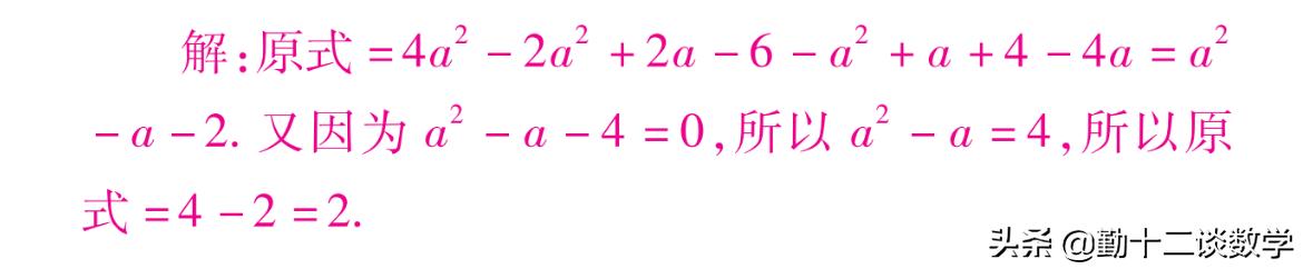 分析:很多同学看了这个题目一眼,就觉得自己肯定不会做,因此出现了二次未知数,不要说二次了,有些一次未知数都不会解。其实,我们不要被这个一元二次方程给忽悠了,本题根本就不需要求出a的值。