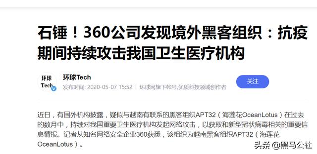 今天黑马是来“平反”360,那个几次三番揭露了美国网络攻击的企业。