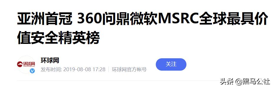2019年的时候,在微软举办的一年一度BlackHat“全球黑帽大会”上,360问鼎微软MSRC全球最具价值安全精英榜。