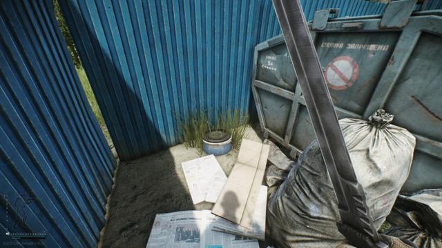 第一个彩蛋点,在Scav撤离点Svatiry死胡同货车旁的草丛(彩蛋点在图片左下角)。