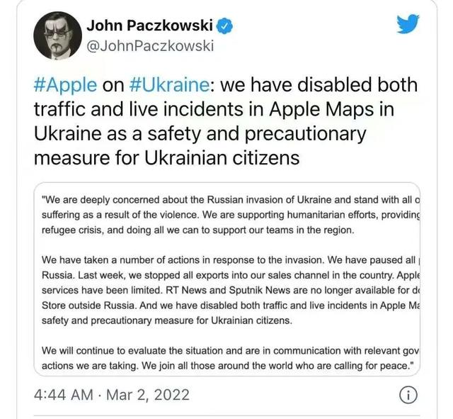- 响应美国和欧盟对俄罗斯的经济制裁,在俄罗斯停用苹果数字支付钱包Apple Pay。