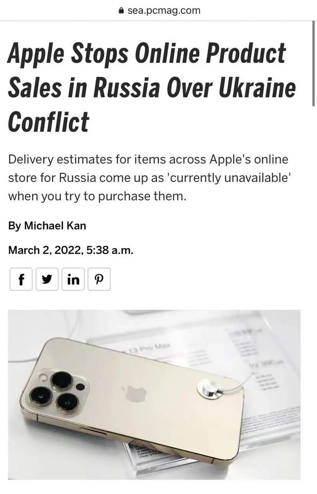 - 暂停在俄罗斯官网销售旗下所有产品;