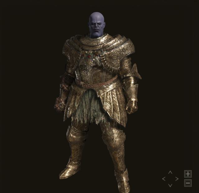 从图片中看到,为了更贴近灭霸电影中的形象,使用了更胖的体型,盔甲为“大树守卫套装”也是金色。在Reddit网友HalPhaS930分享他的"灭霸”捏脸后,贴中的许多玩家认为这是他们见过还原度最高的捏脸了,有人多人希望贴主能分享捏脸数据,但他好像并不打算与人分享。
