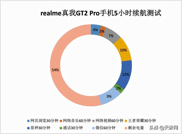 在5小时日常习惯测试中,真我GT2 Pro还剩余54%的电量,就算重度手机用户也能保证日常使用无忧。冲速度方面,真我GT2 Pro在33分钟时间里,实现从0%到100%的充电,就算在紧急情况下,也能通过快充为手机补充足够的电量。