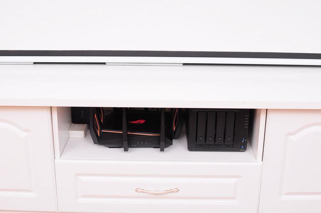 思来想去,决定将路由器放到电视柜里,由于电视柜和书房之间只有一根网线,所以NAS跟着路由器一起到了电视柜里。