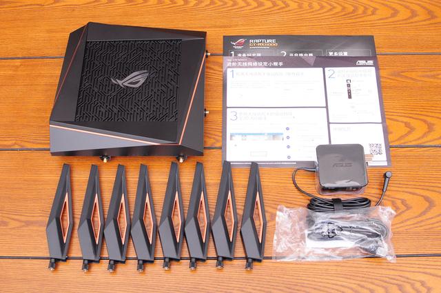 路由器的外观线条简单、棱角分明、沉稳中不失大气,再配上中间的ROG败家之眼,信仰满满。