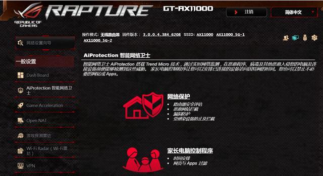 AiProtection智能网络卫士功能,里面包含网络保护和家长控制两个子项。