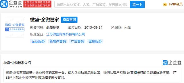 企查查信息显示,微盛·企微管家是基于企业微信的营销平台,助力企业私域流量运营,其公司成立于2015年,法定代表人为杨明,经营范围包含:电脑加工图片服务;市场营销策划;企业管理咨询;房屋租赁等。
