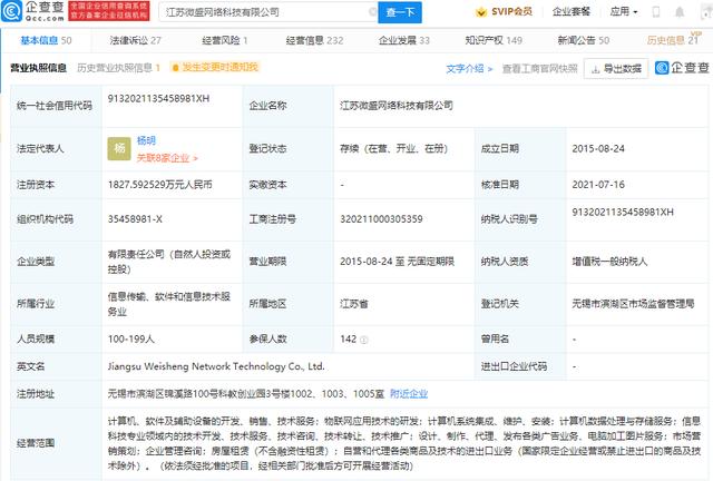 企查查App显示,7月16日,江苏微盛网络科技有限公司发生工商变更,新增股东广西腾讯创业投资有限公司,同时公司注册资本由1645.42万元人民币增加至1827.59万元人民币,增幅为11.07%。