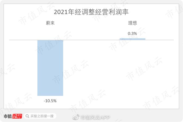 再来看全年数据,由于小鹏暂未披露年度报告,因此只比较蔚来与理想的话,二者的经调整经营利润率依旧存在不小的差距,相差了十个百分点,蔚来为负的10.5%。