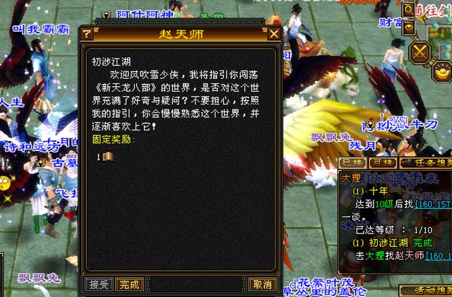 当然我们现代人的生活着实也已经今非昔比,考虑到时间成本和接受能力的问题,官方还是借着大理城四大善人之口,为玩家制定了1-10级的专属回归任务,帮助玩家回忆起当年锋芒初露的感觉。