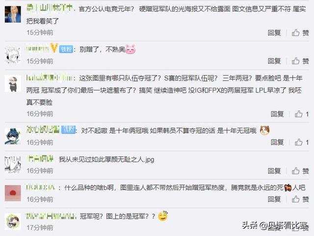 最后就是在LPL官博这条预告下方的评论区,已经彻底炸锅。有喷官方硬蹭冠军热度,又不让冠军战队出现在海报上的,也有喷图文严重不符的,还有人表示官方不认可韩援夺冠,所以LPL现在是十年零冠的,总之批评的人非常多。