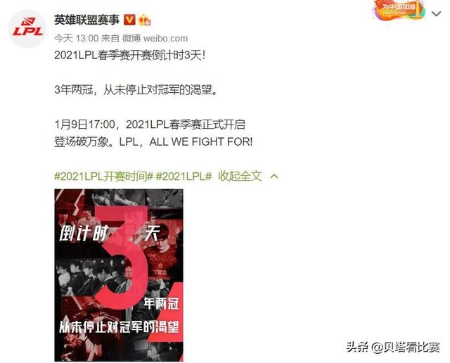 事情是这样的,LPL官方的发言如下图所示,先是说了倒计时3天,然后又说3年2冠,最后就是预告了春季赛的揭幕赛将在1月9日下午17点准时开赛。还配上了一张海报。