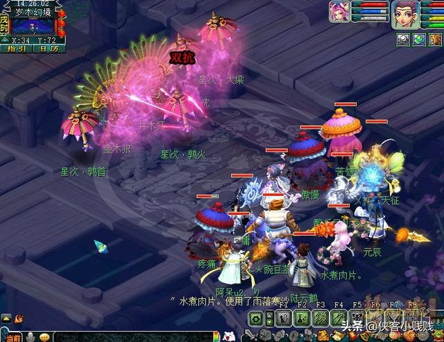 5、当我们击飞所有小怪后,井木犴会召唤角木蛟同时再召唤3个星次和2个阴阳伞,这3个星次当中星次·寿星,每回合开始会召唤一个阴阳伞,每回合结束时攻击一个阴阳伞恢复所有生命,建议玩家优先集火掉星次·寿星。