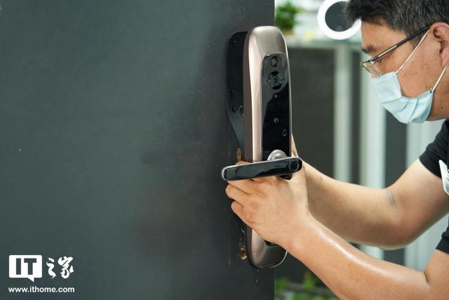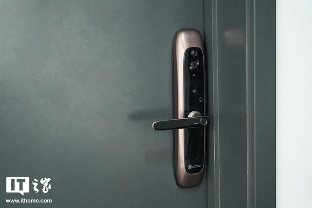 门把手采用了传统的机械式设计,门把手顶部是指纹识别模块,开门方式和传统的门锁一致,当识别指纹之后,需要将门把手按下去推开门。