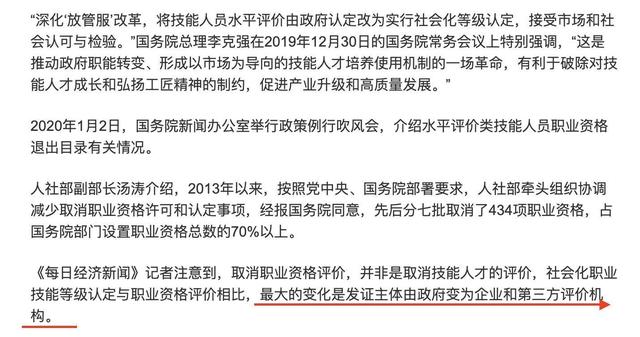 其实从2019年开始,国务院常务会议就将技能人员水平评价由政府认定改为实行社会化等级认定。